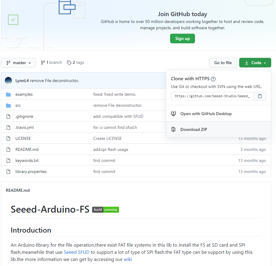 - 次のサイトからSeeed_Arduino_FS-master.zipをダウンロードします。